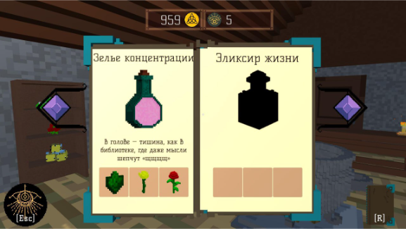 - Ингредиенты в книге можно открывать за очки прозрения.